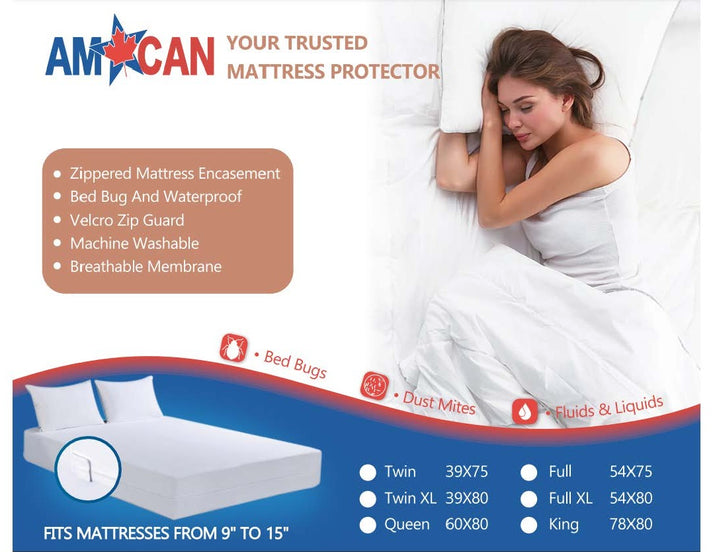 Housses de matelas certifié punaise de lit avec fermeture éclair (9 à 15 pouces d'épaisseur)